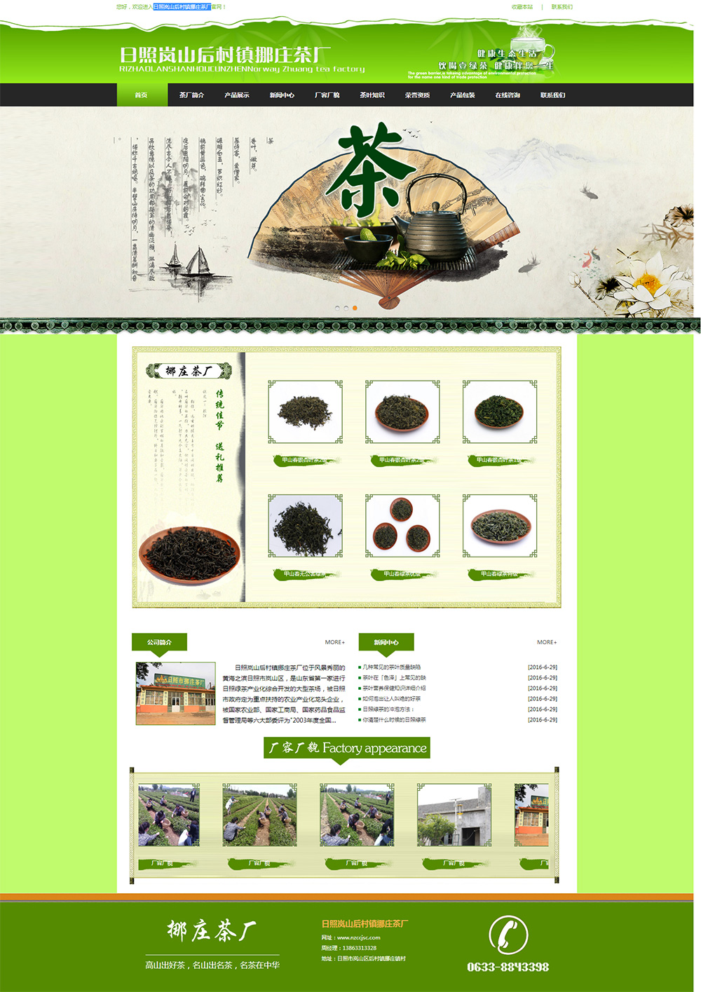 • 日照嵐山后村鎮(zhèn)挪莊茶廠位于風景秀麗的黃海之濱日照市嵐山區(qū),是山東省第一家進行日照綠茶產(chǎn)業(yè)化綜合開發(fā)的大型茶場,被日照市政府定為重點扶持的農(nóng)業(yè)產(chǎn)業(yè)化龍頭企業(yè),被國家農(nóng)業(yè)部、國家工商局、國家藥品食品監(jiān)督管理局等六大部委評為"2003年度全國食品安全示范單位"中的唯一茶葉企業(yè),被中國食品檢驗協(xié)會評為"國家質量檢測合格產(chǎn)品",被日照市工商局、質量技術監(jiān)督局、衛(wèi)生局等多家單位聯(lián)合評為"日照市消費者滿意單位"等榮譽,被中國消費者基金會評為"中國消費者信譽品牌",2005年在中國第三屆(日照)國際茶博覽會名優(yōu)茶評選中再